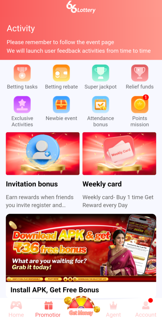 Friends, you can also share this game on your Facebook, Instagram, Twitter and 66 Lottery APK and the more friends you get this game downloaded and shared, the more you get a commission.